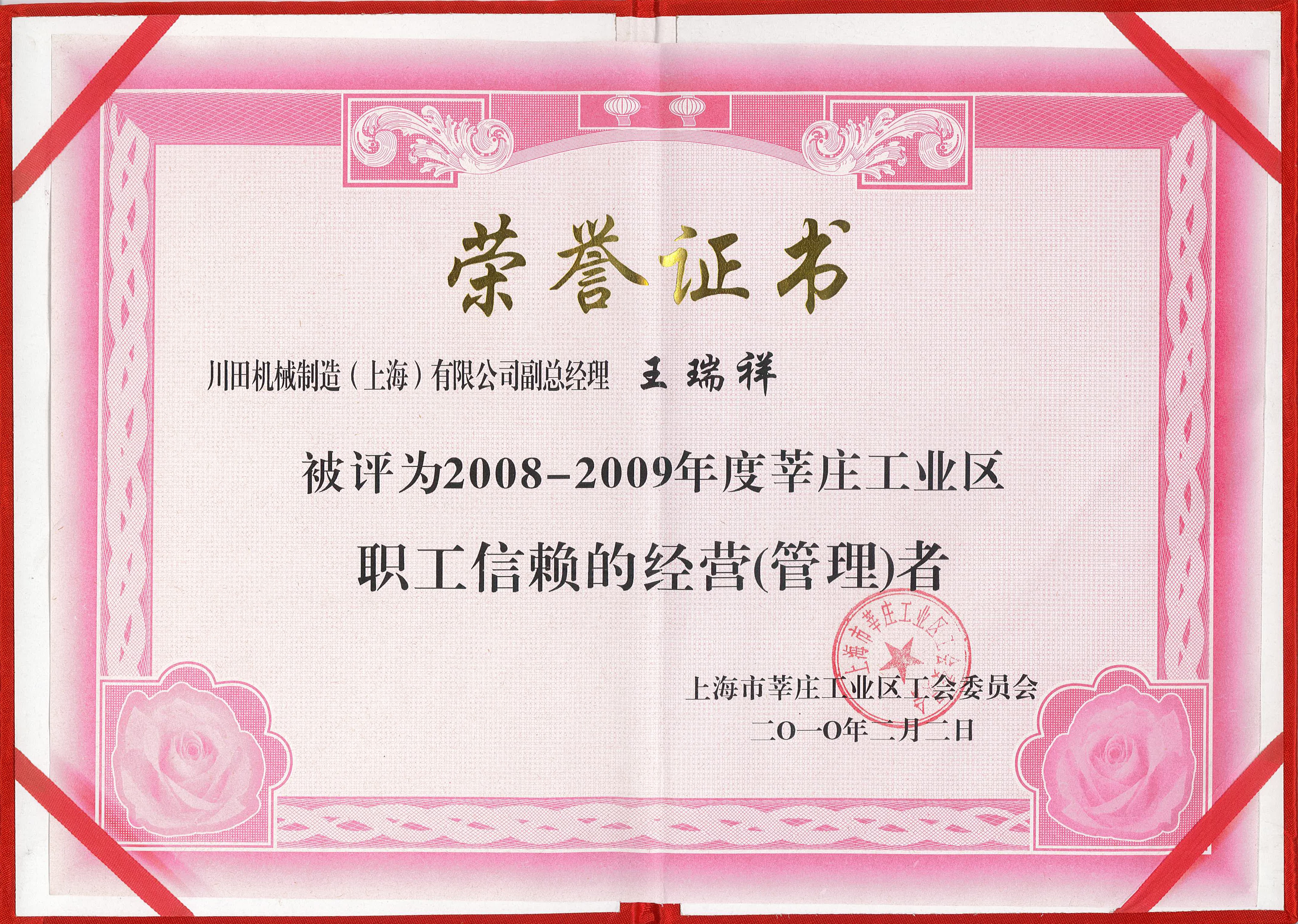 2008-2009 莘莊工業(yè)區(qū)職工信賴的經(jīng)營(yíng)者