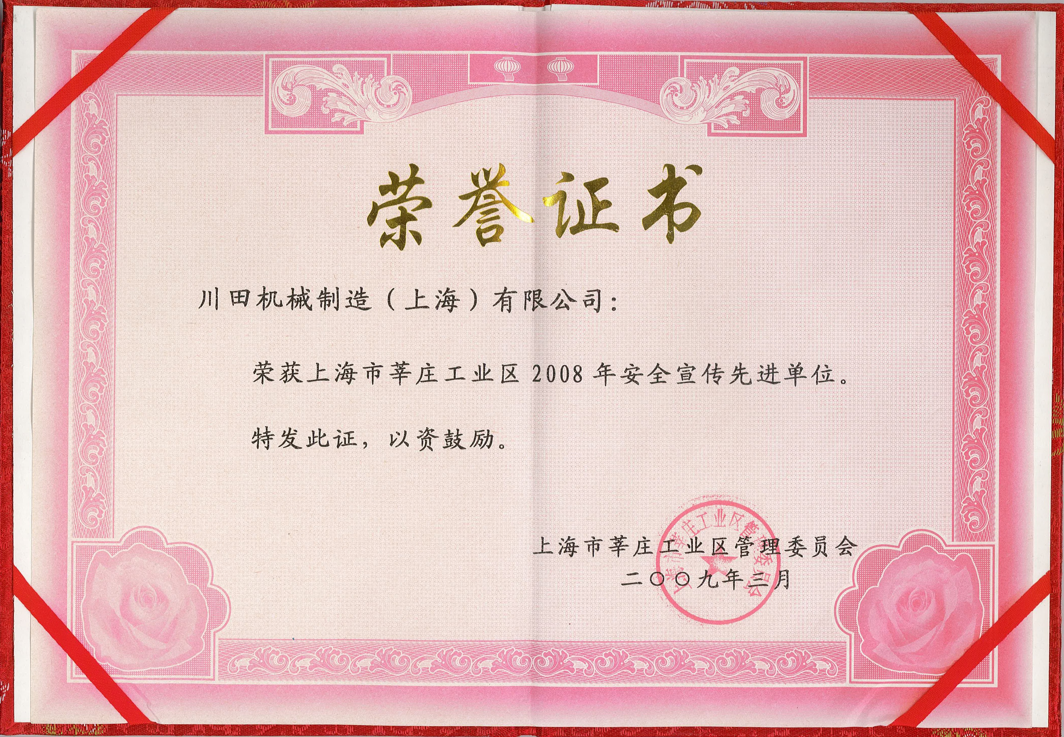2008年度莘莊工業(yè)區(qū)安全宣伝先進企業(yè)