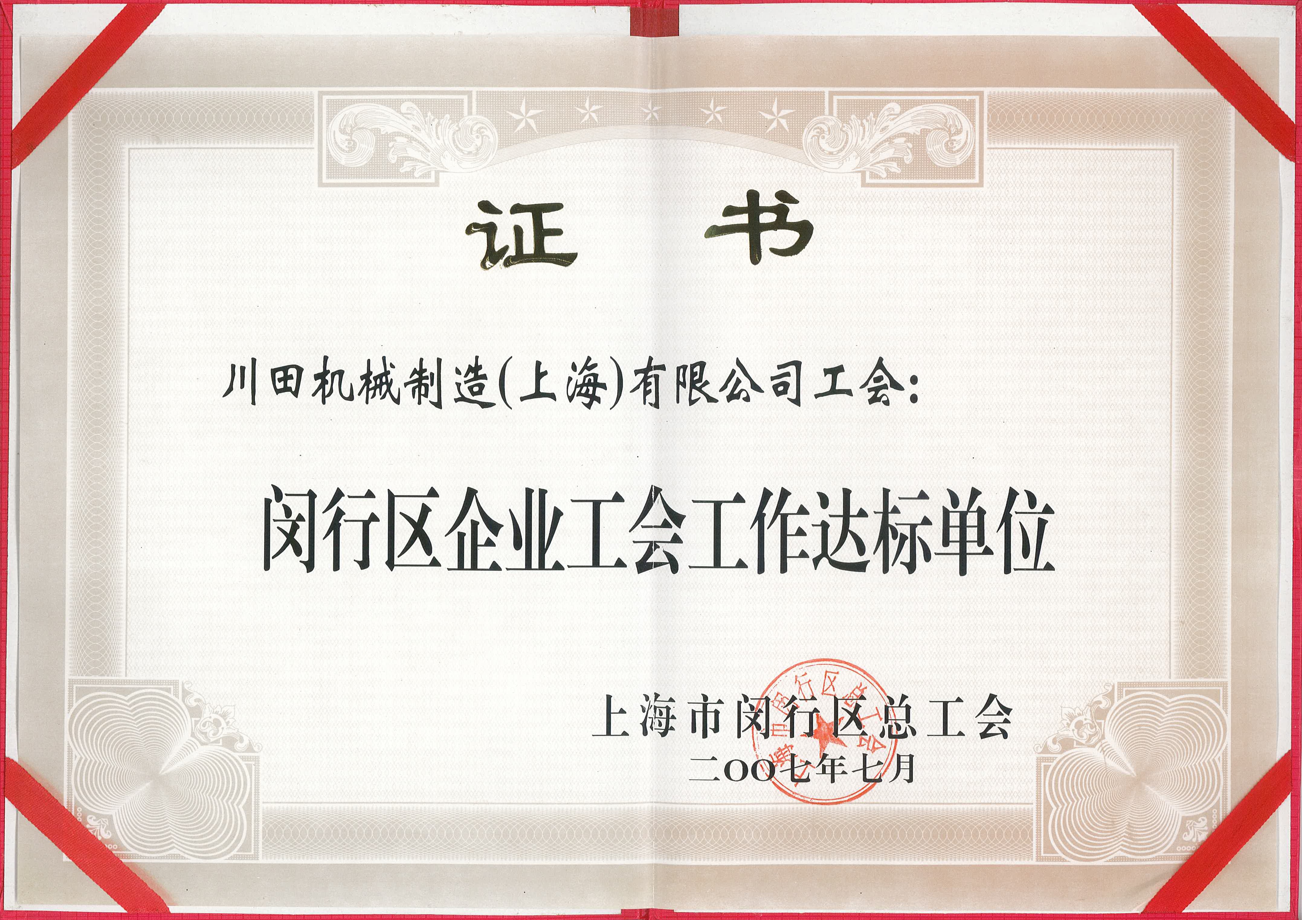 2007年度閔行區(qū)企業(yè)組合業(yè)務達成賞