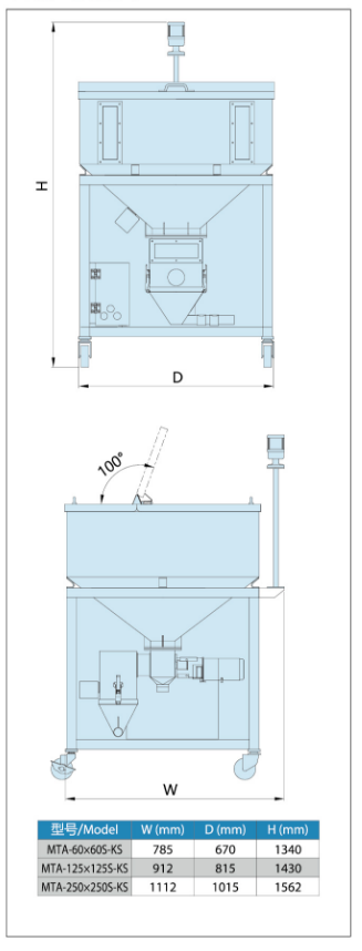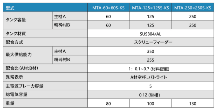 廉価型容量計(jì)量裝置 カワタのミックタンクは2種類の材料(主材+粉碎材)を任意の混合比率で供給可能な簡易計(jì)量機(jī)です。